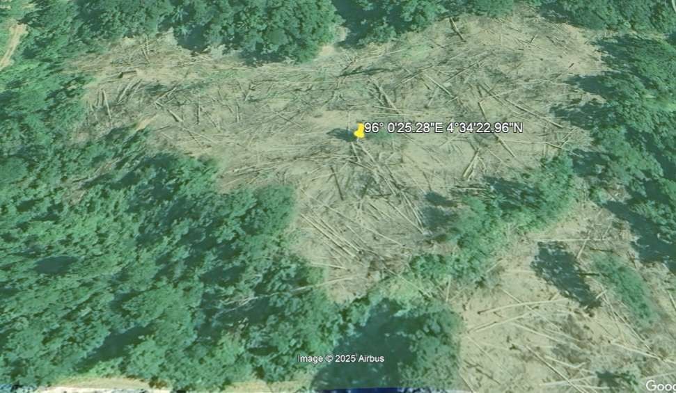 Ia memastikan dari data citra satelit yang dapat dipercaya terkait titik koordinat berada 96° 0’25.28″E 4°34’22.96″N. Dari kondisi di lapangan bahwa aktivitas tersebut sudah berlangsung lumayan lama.