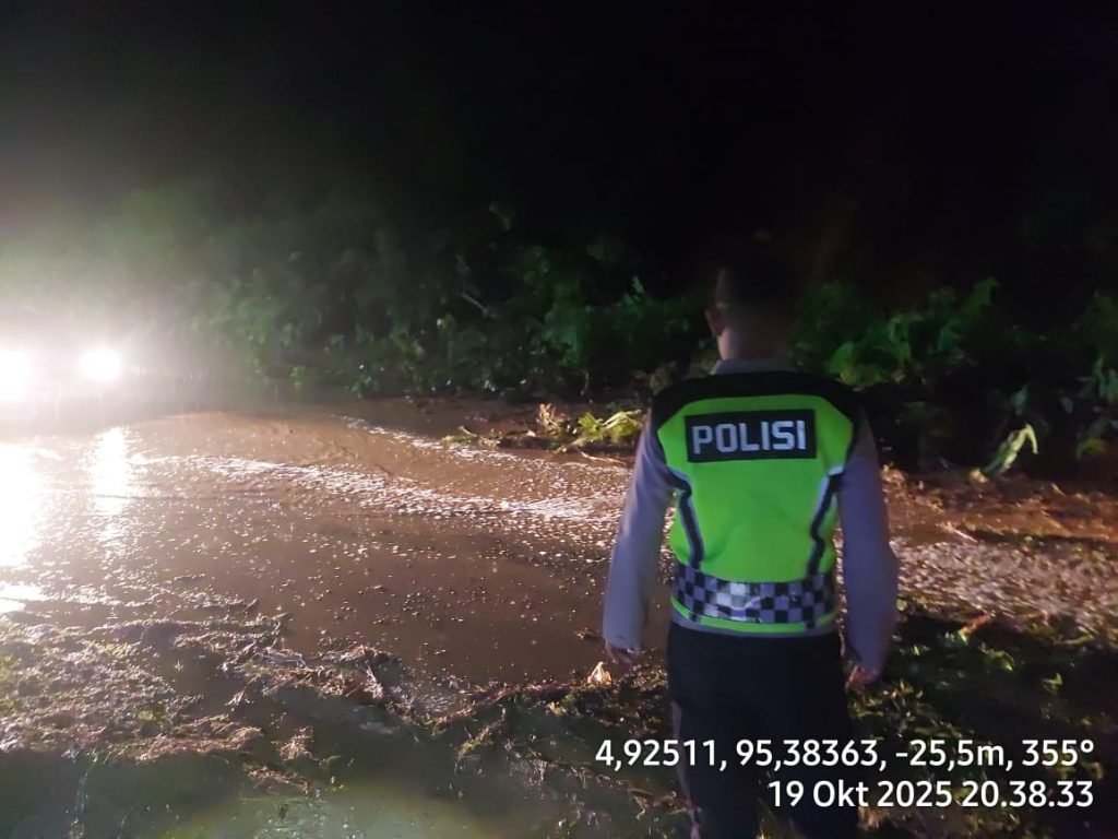 ISUPUBLIK.ID – Hujan deras yang mengguyur wilayah Kabupaten Aceh Jaya sejak Minggu pagi (19/10/2025) menyebabkan terjadinya longsor di kawasan Desa Krueng No, Kecamatan Sampoiniet. Longsor tersebut terjadi tepatnya di KM 102+800 dan menutupi sebagian badan jalan nasional yang menghubungkan Calang dengan Banda Aceh.