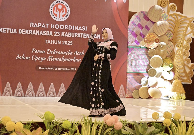 Rakor yang berlangsung sejak Jumat (7/11) hingga Minggu (9/11) itu mengusung tema “Peran Dekranasda Aceh dalam Upaya Memakmurkan Perajin.” Kegiatan ini menjadi ajang sinergi antar-Dekranasda kabupaten/kota di Aceh untuk memperkuat pembinaan terhadap para perajin serta meningkatkan daya saing produk lokal.