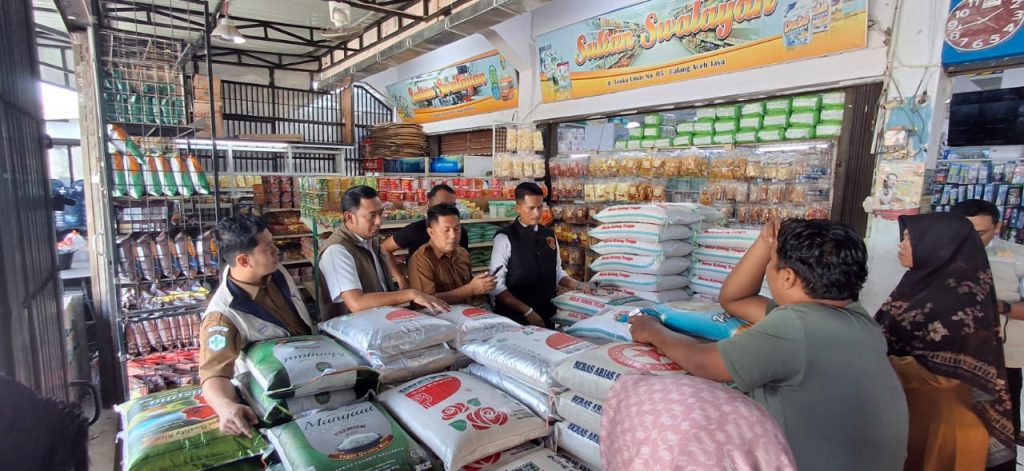 Dinas Perdagangan, Perindustrian, Koperasi dan UKM (Disperindagkop) Aceh Jaya bersama Satgas Pangan Polres Aceh Jaya, Dinas Pangan, serta Bulog Meulaboh melakukan inspeksi mendadak (sidak) ke sejumlah pedagang beras di Pasar Calang, Senin (27/10/2025).