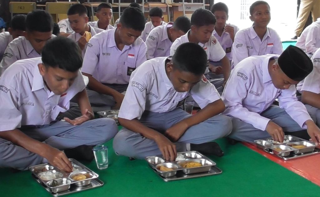 Siswa SMK Negeri 1 Calang sedang laksanakan Makan siang bergzi gratis (MBG).(Senin,6/10/2025-foto-Isupublik.id)